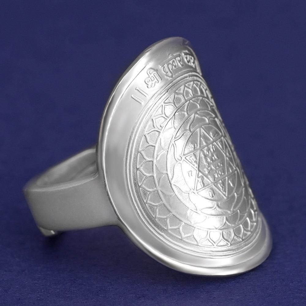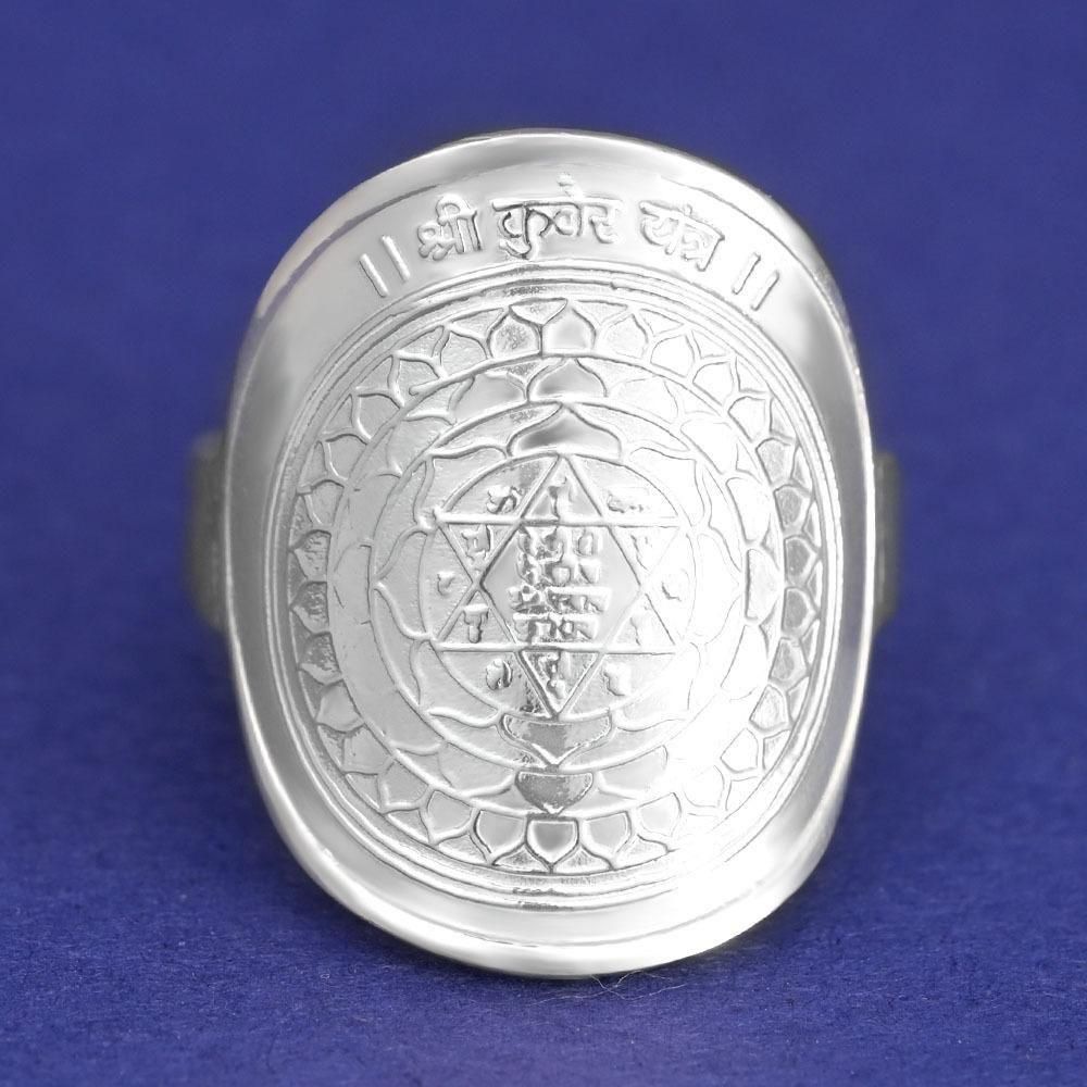 富と財宝の神であるクベーラ神とクベーラ・ヤントラが描かれたシルバーのリング