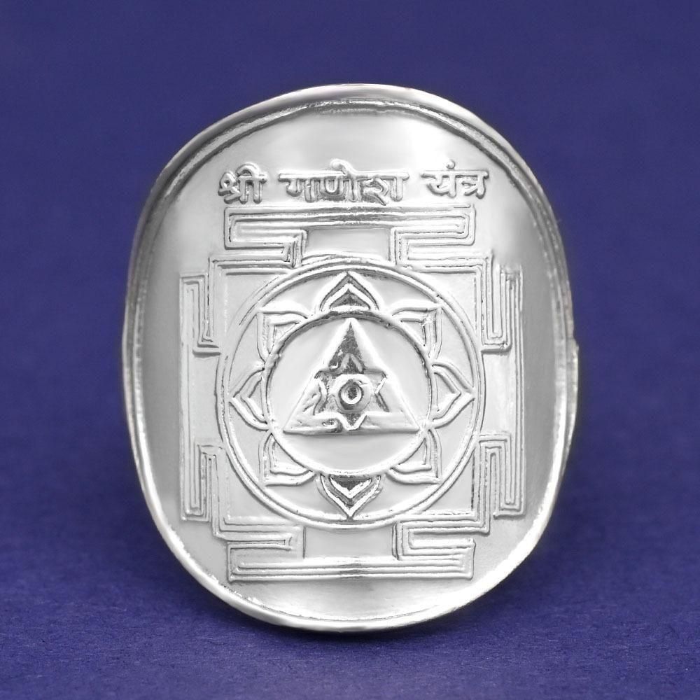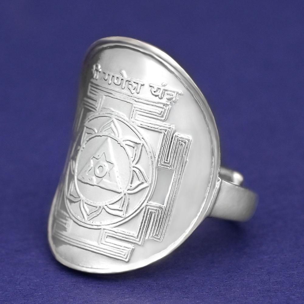 ガネーシャ・ヤントラとガネーシャ神が描かれたシルバーの美しいリングです。