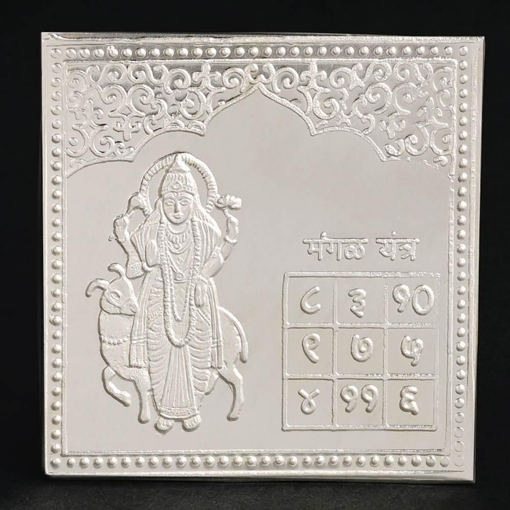 大地からのエネルギーを吸収し、心身の負のエネルギーを放出する力がとりわけ強いといわれるシルバー製のヤントラです。