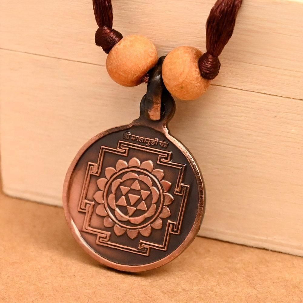 敵を倒す強力なバガラームキー・ヤントラとバガラームキー女神が描かれた浄化作用の強い銅製のペンダントトップです。表面にはバガラームキー・ヤントラが描かれ、裏面にはバガラームキー女神の絵が描かれています。