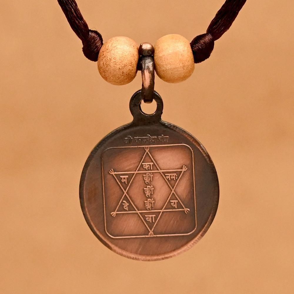 最愛の人を引き寄せるヴァシーカラナ・ヤントラと愛の神であるカーマデーヴァのヤントラが描かれた浄化作用の強い銅製のペンダントトップです。裏表にヴァシーカラナ・ヤントラとカーマデーヴァ・ヤントラが描かれています。