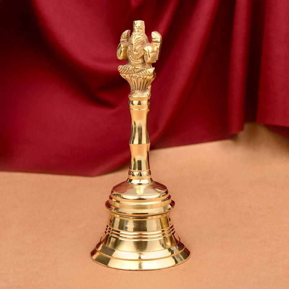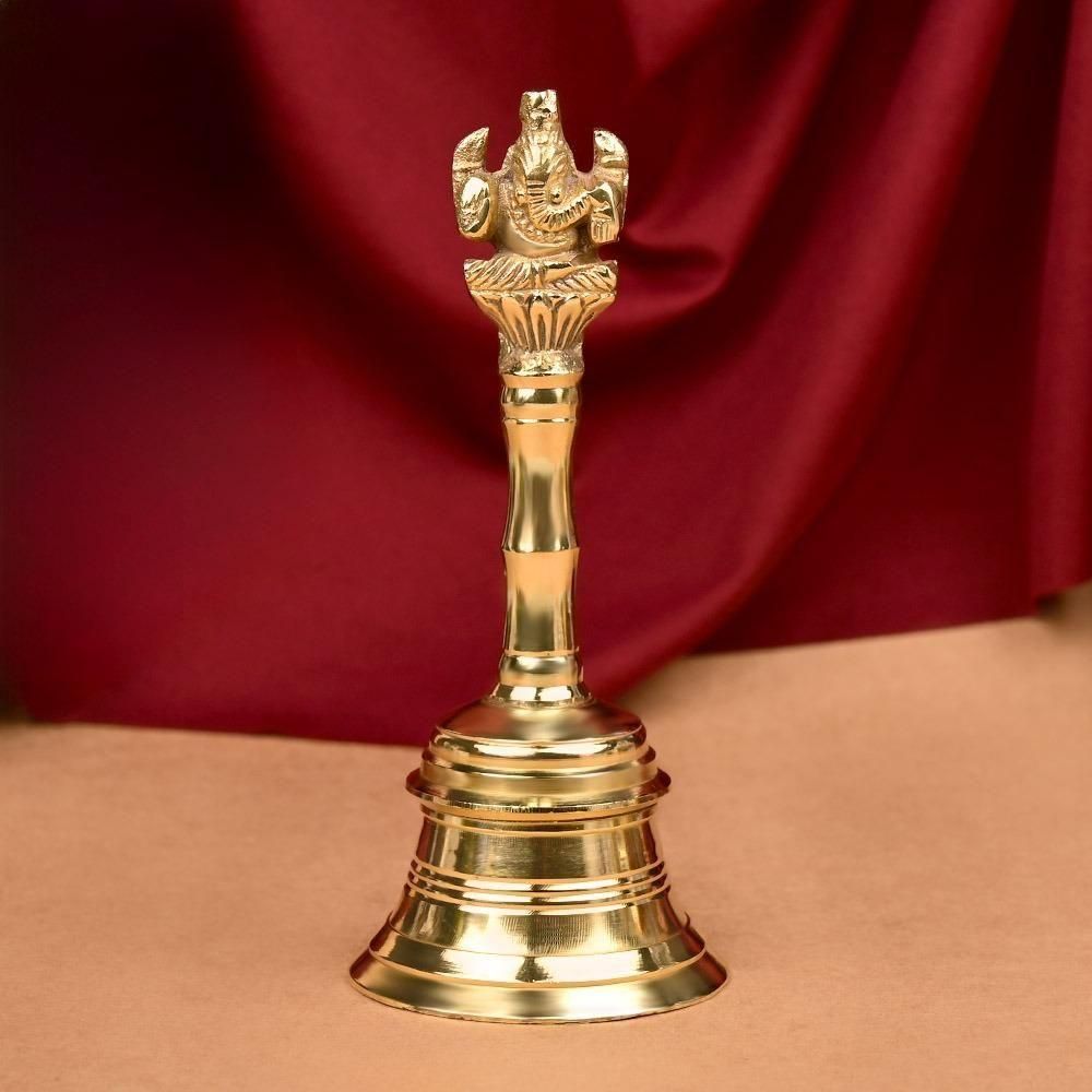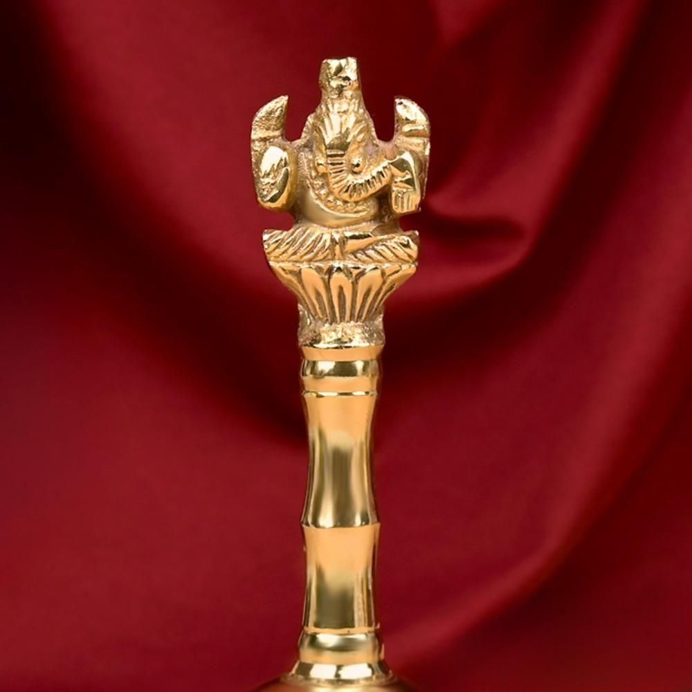 障壁を払拭し幸運をもたらすガネーシャ神が上部にあしらわれた、美しく重厚な真鍮製のハンドベルです。