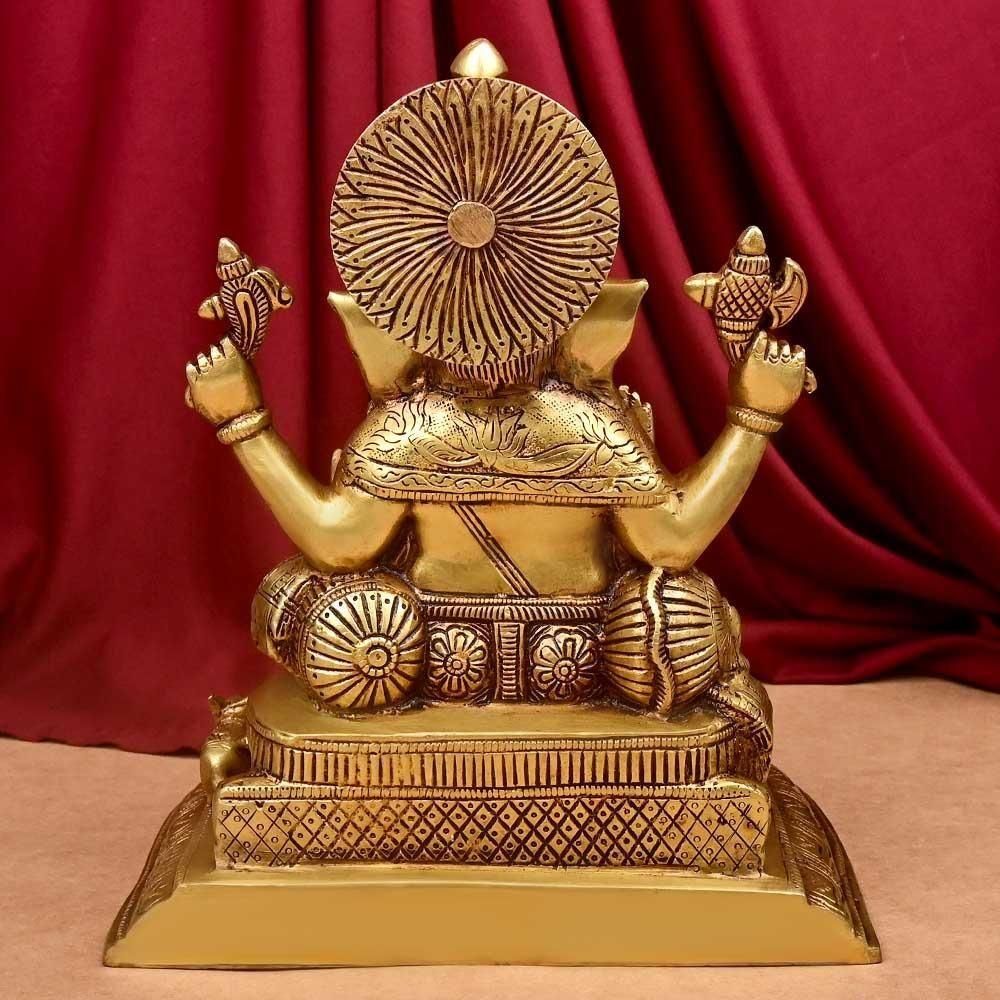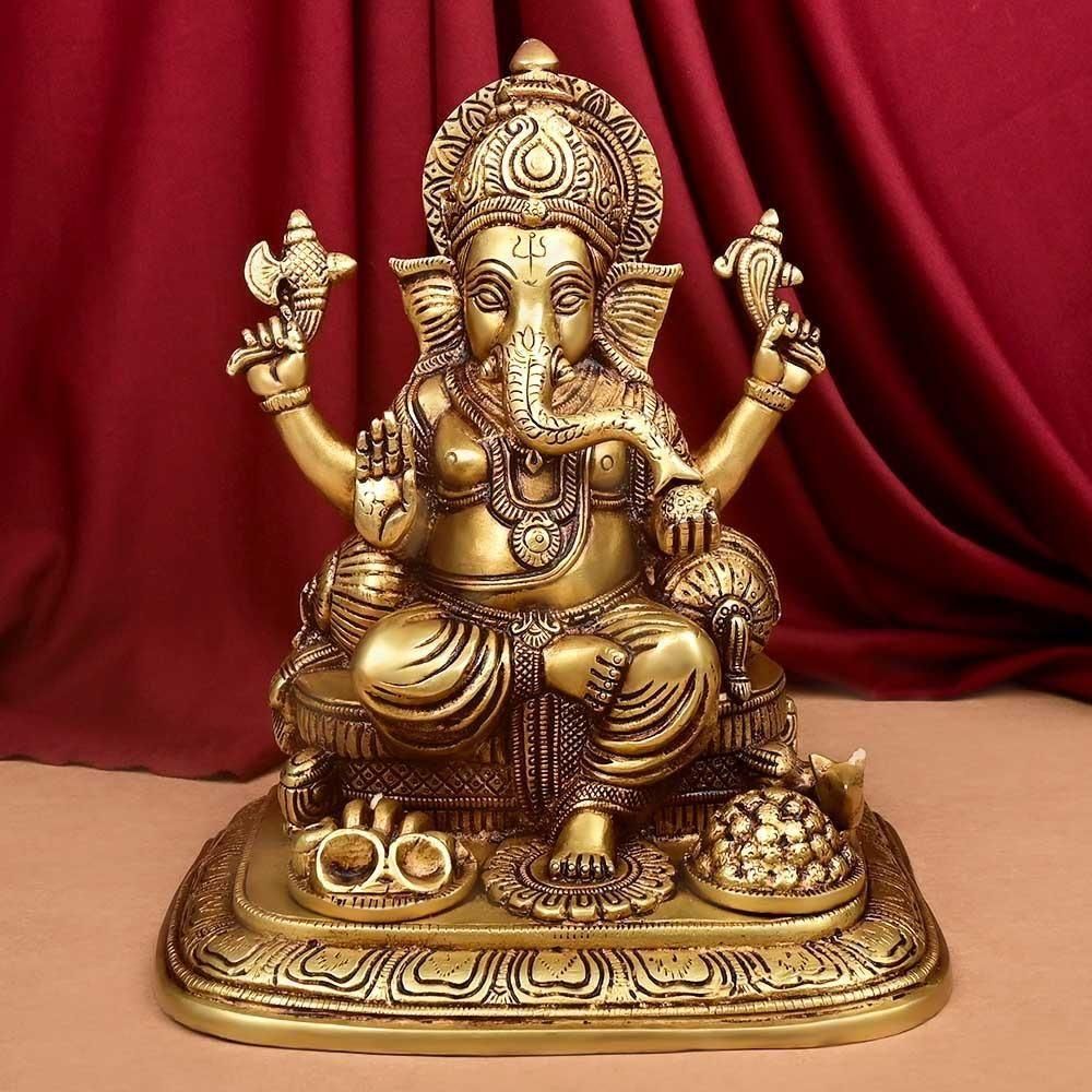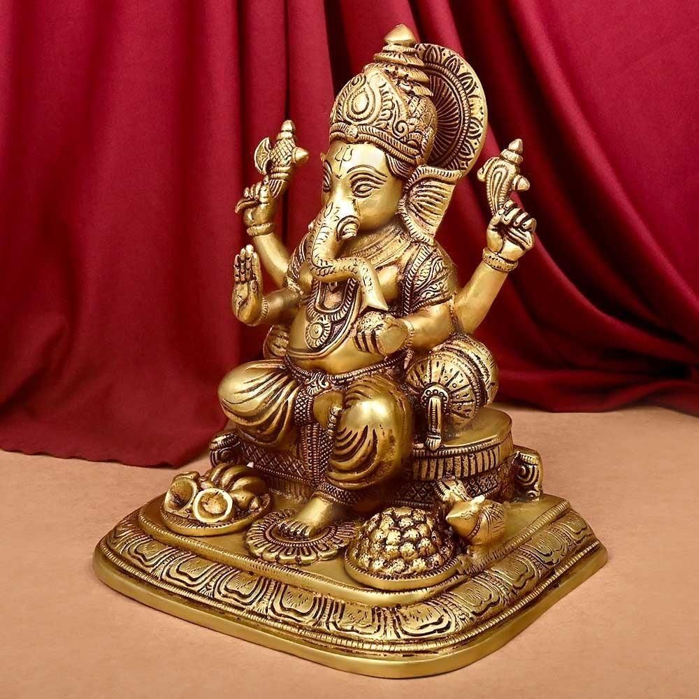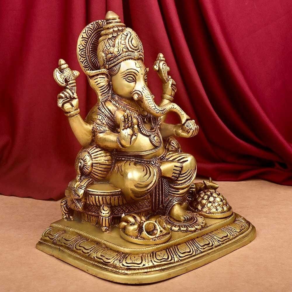 存在感のある大きなサイズの重厚な真鍮製のガネーシャ神像です。