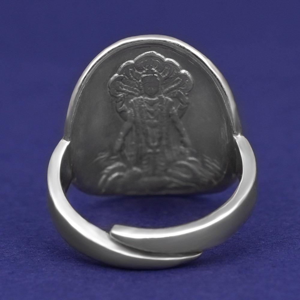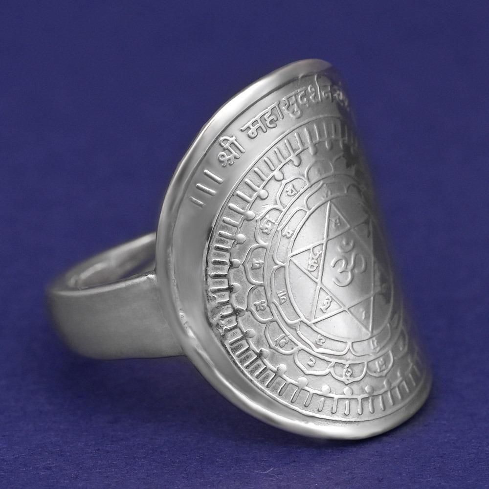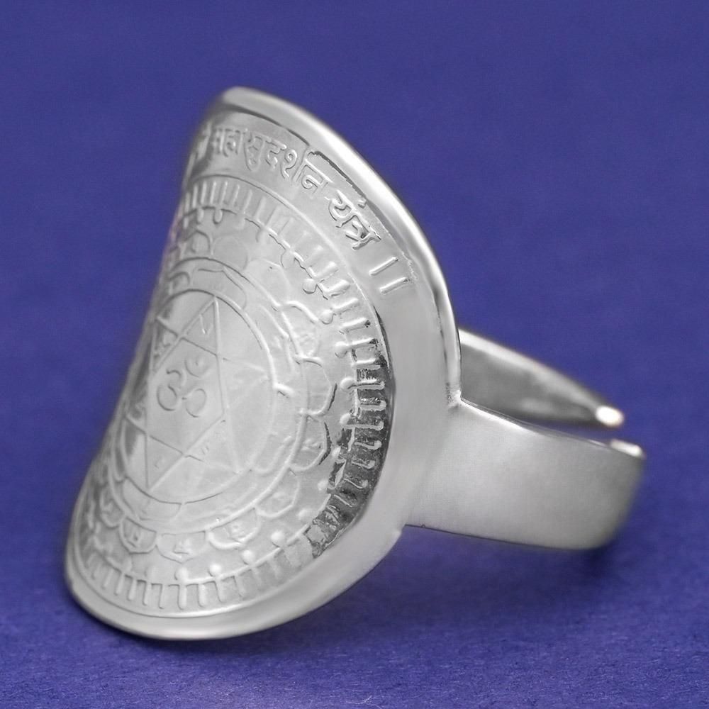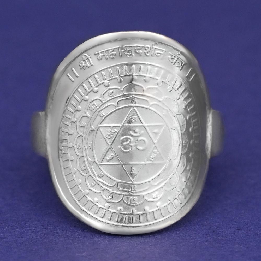 悪を滅するヴィシュヌ神の武器スダルシャナ・チャクラのヤントラが描かれたシルバーの美しいリングです。