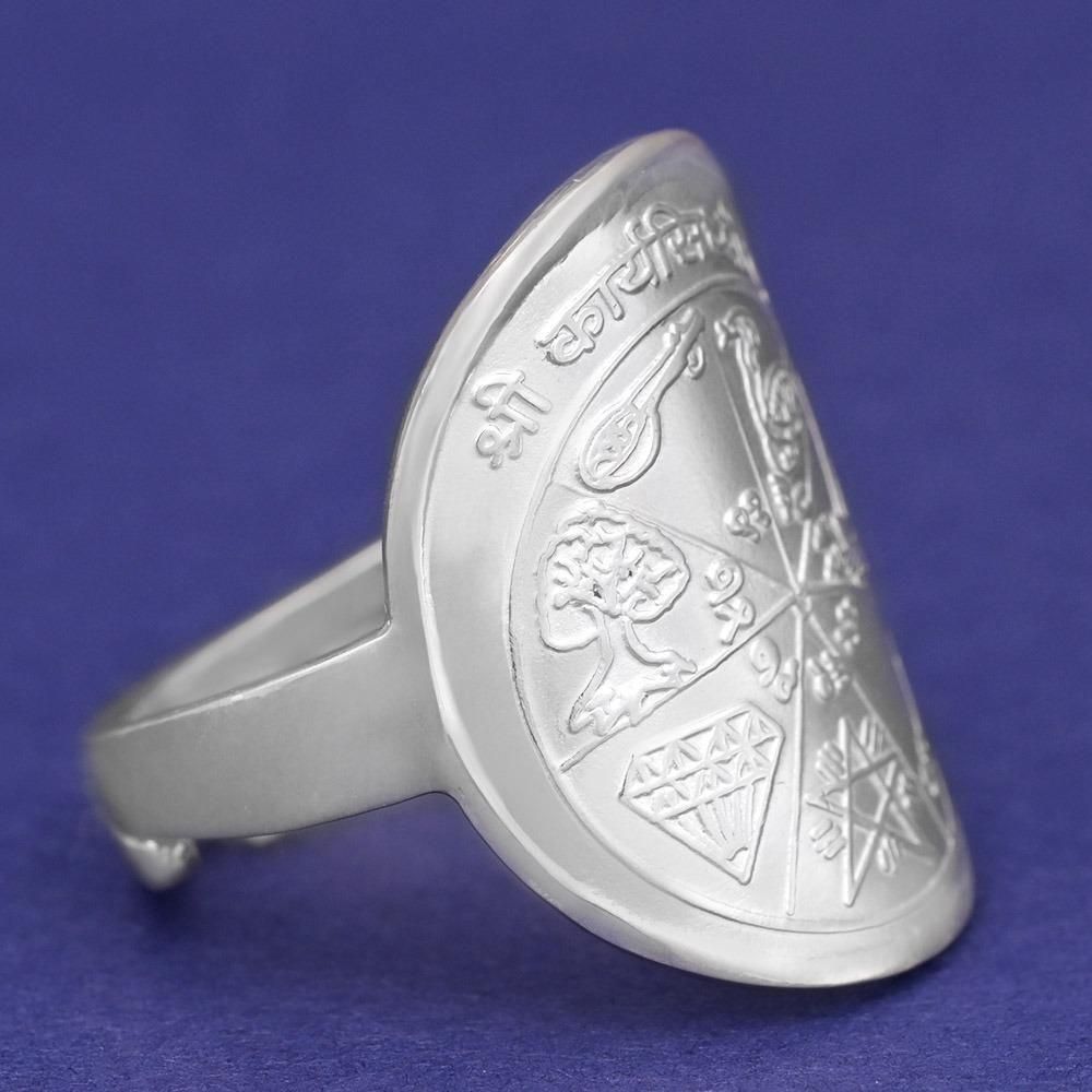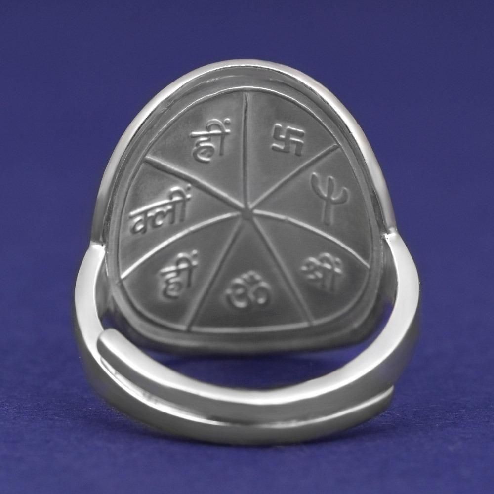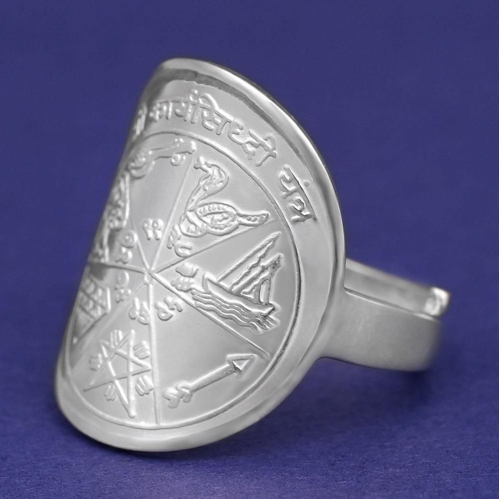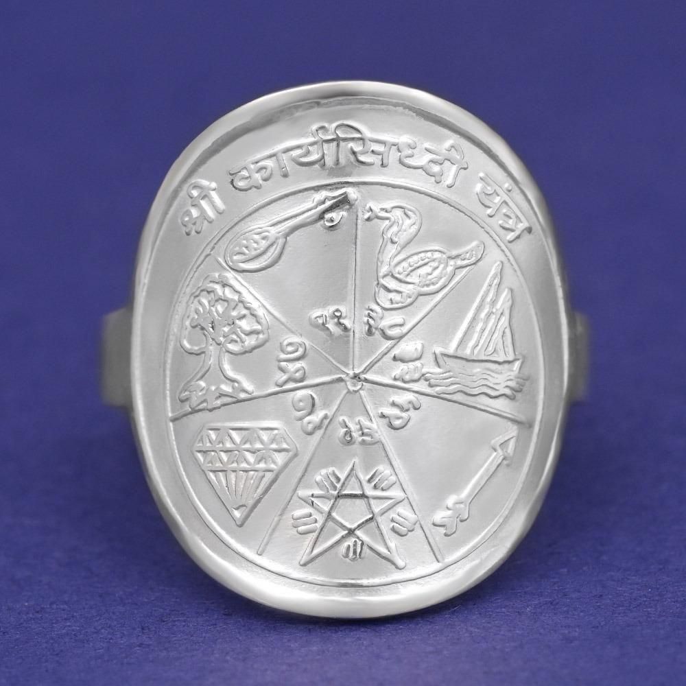 行為のすべてを成功に導き願いを叶えるカーリヤ・シッディ・ヤントラが描かれたシルバーの美しいリングです。