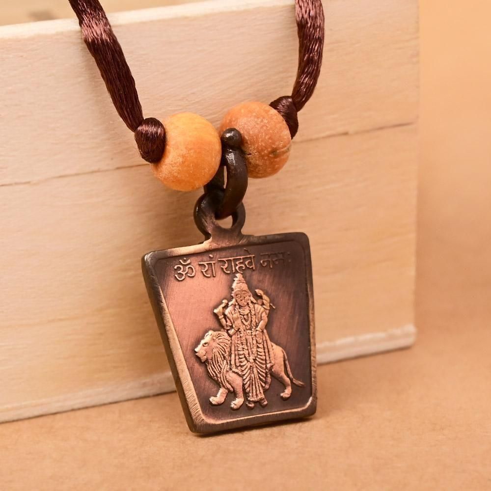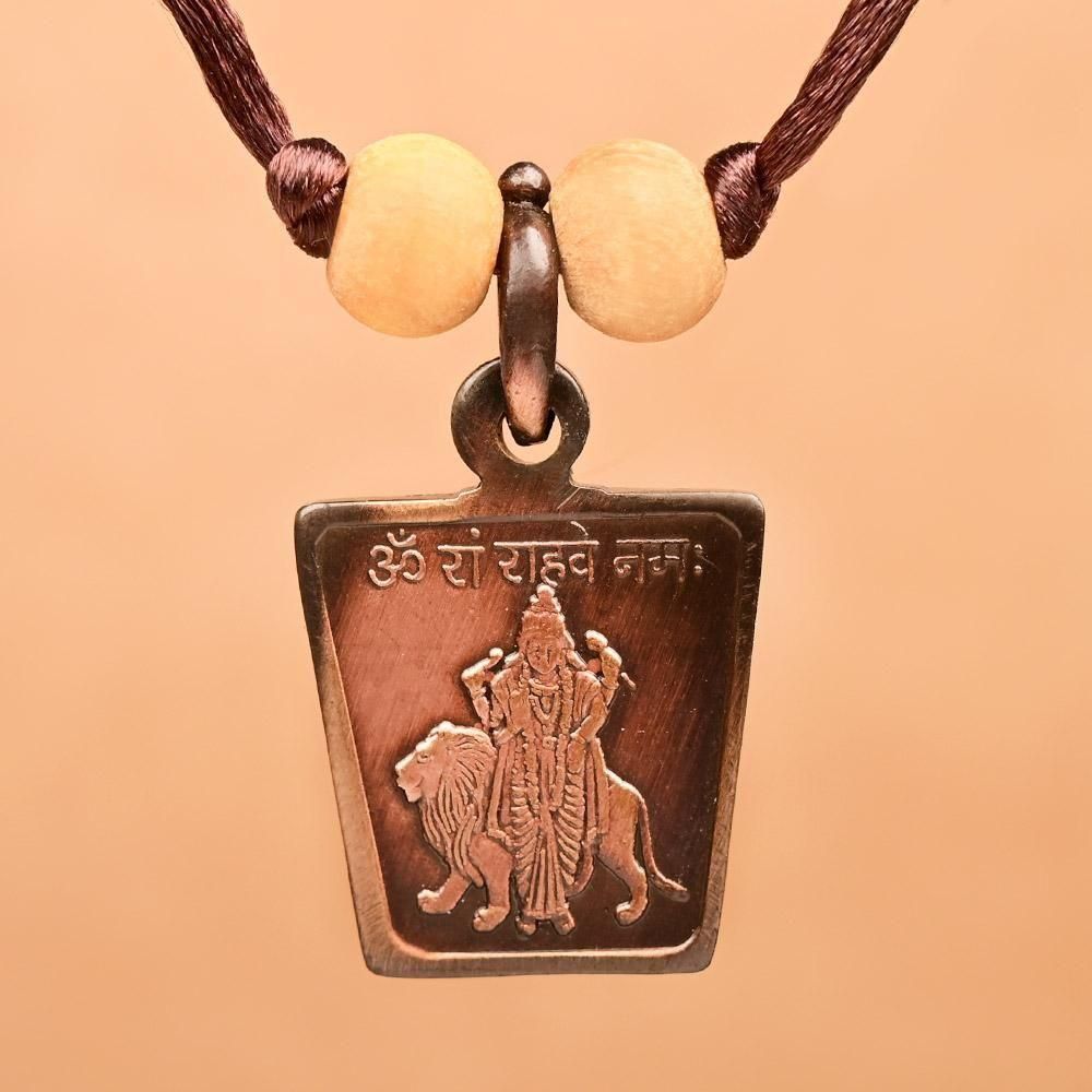 このペンダントトップは浄化作用の強い銅製で、裏表にラーフ・ヤントラとラーフ神が描かれています。