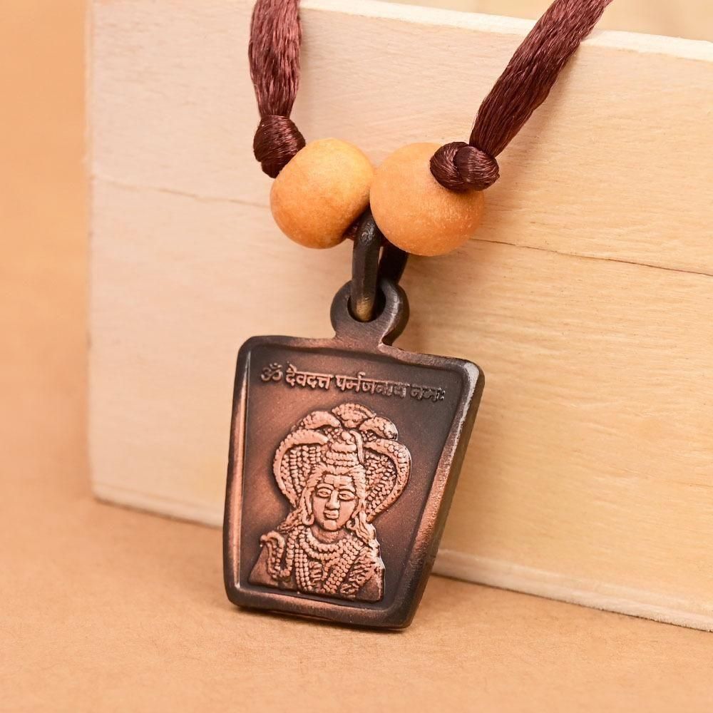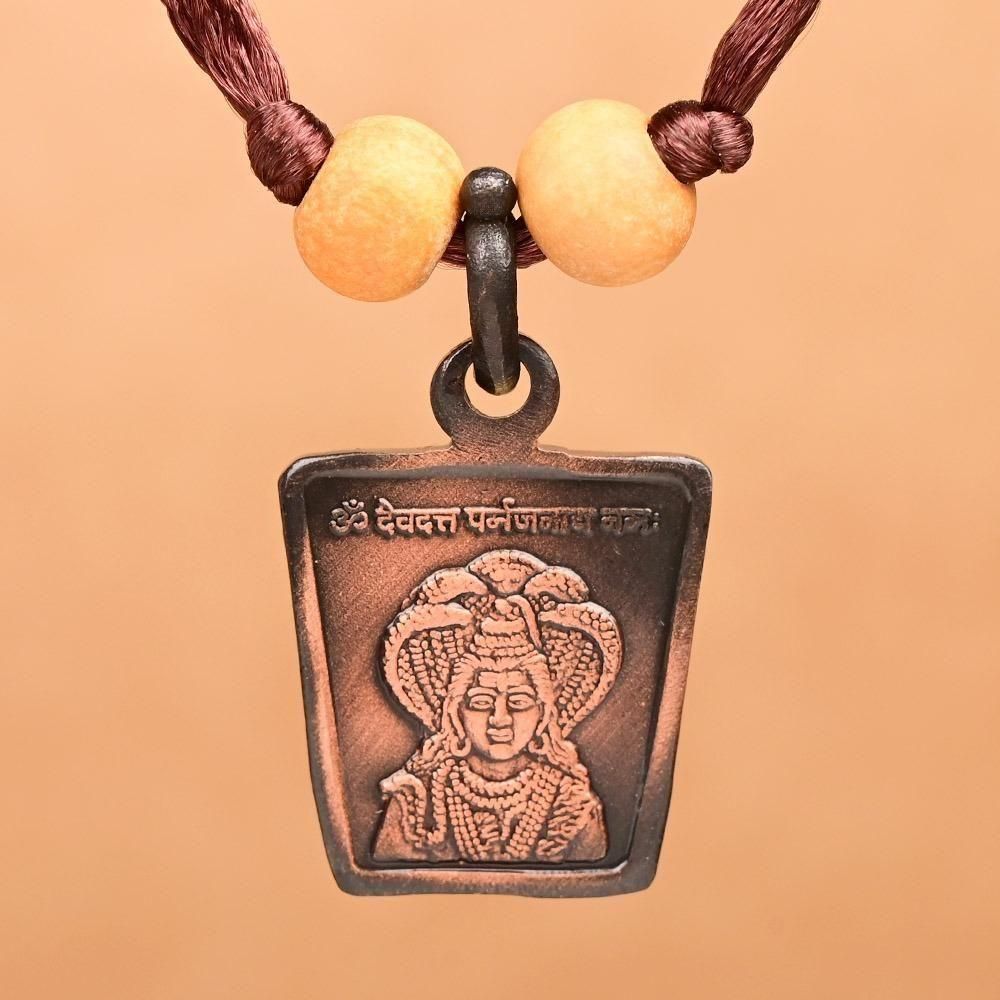 このペンダントトップは浄化作用の強い銅製で、裏表にカーラ・サルパ・ヤントラとシヴァ神が描かれています。