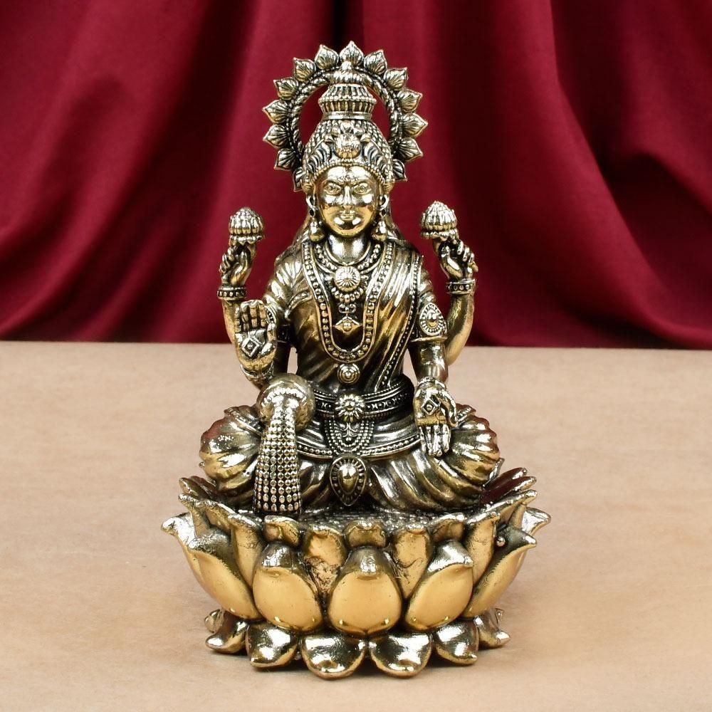 神聖な8種の合金であるアシュタダートゥで作られた、美しい御姿のラクシュミー女神像です。