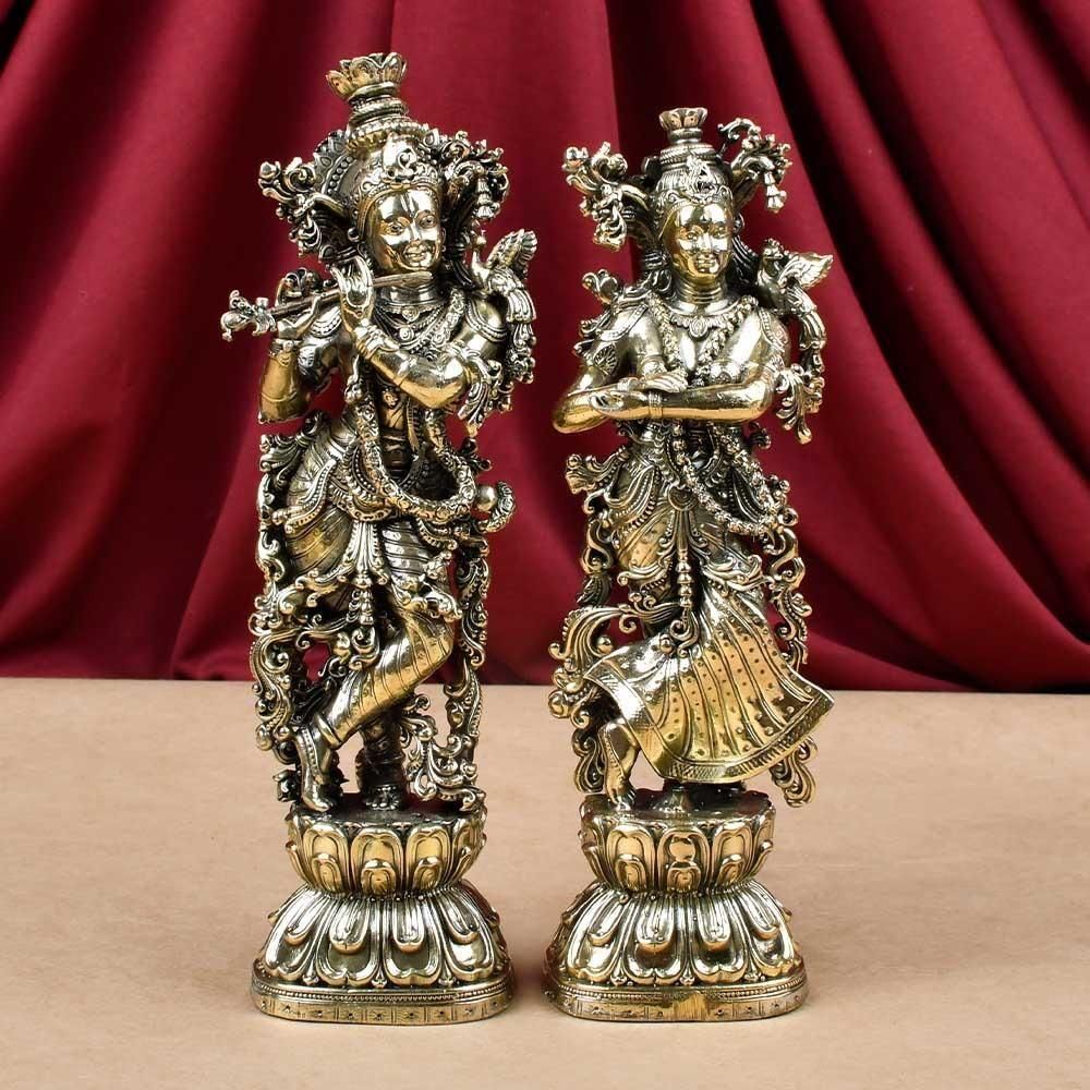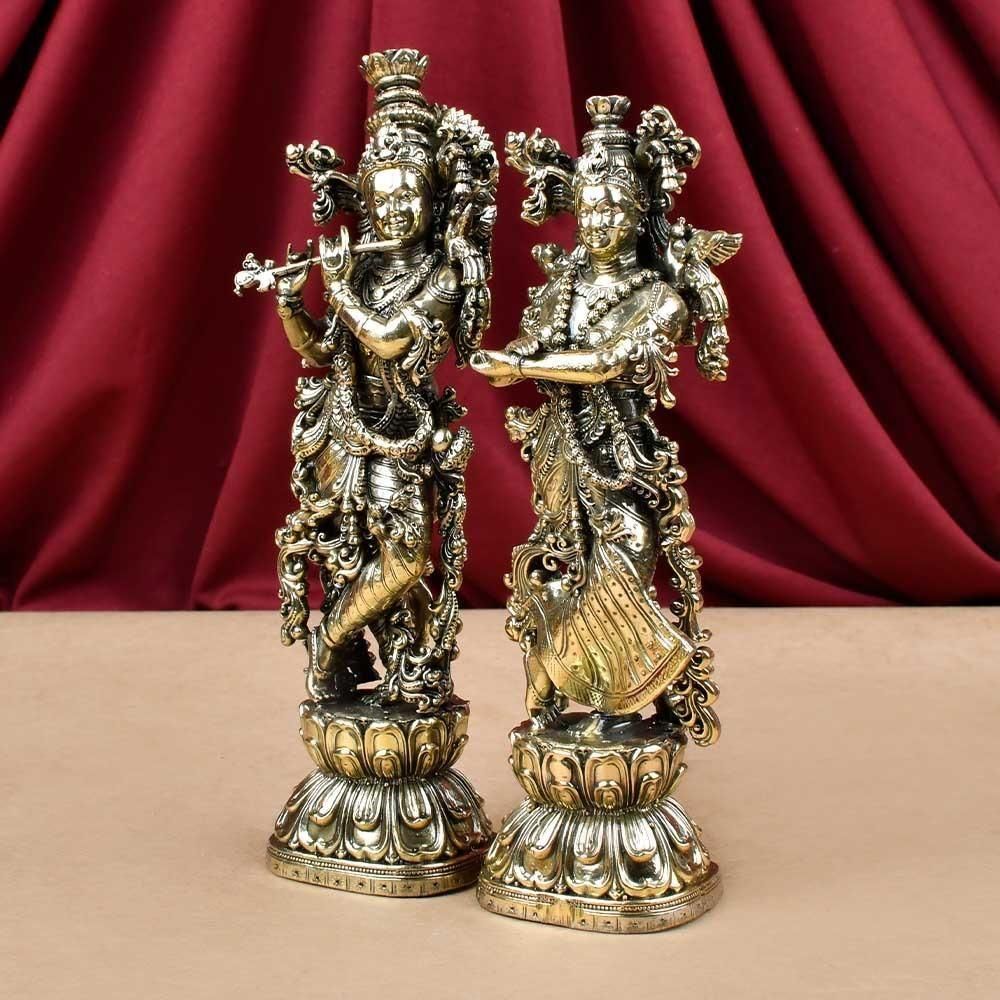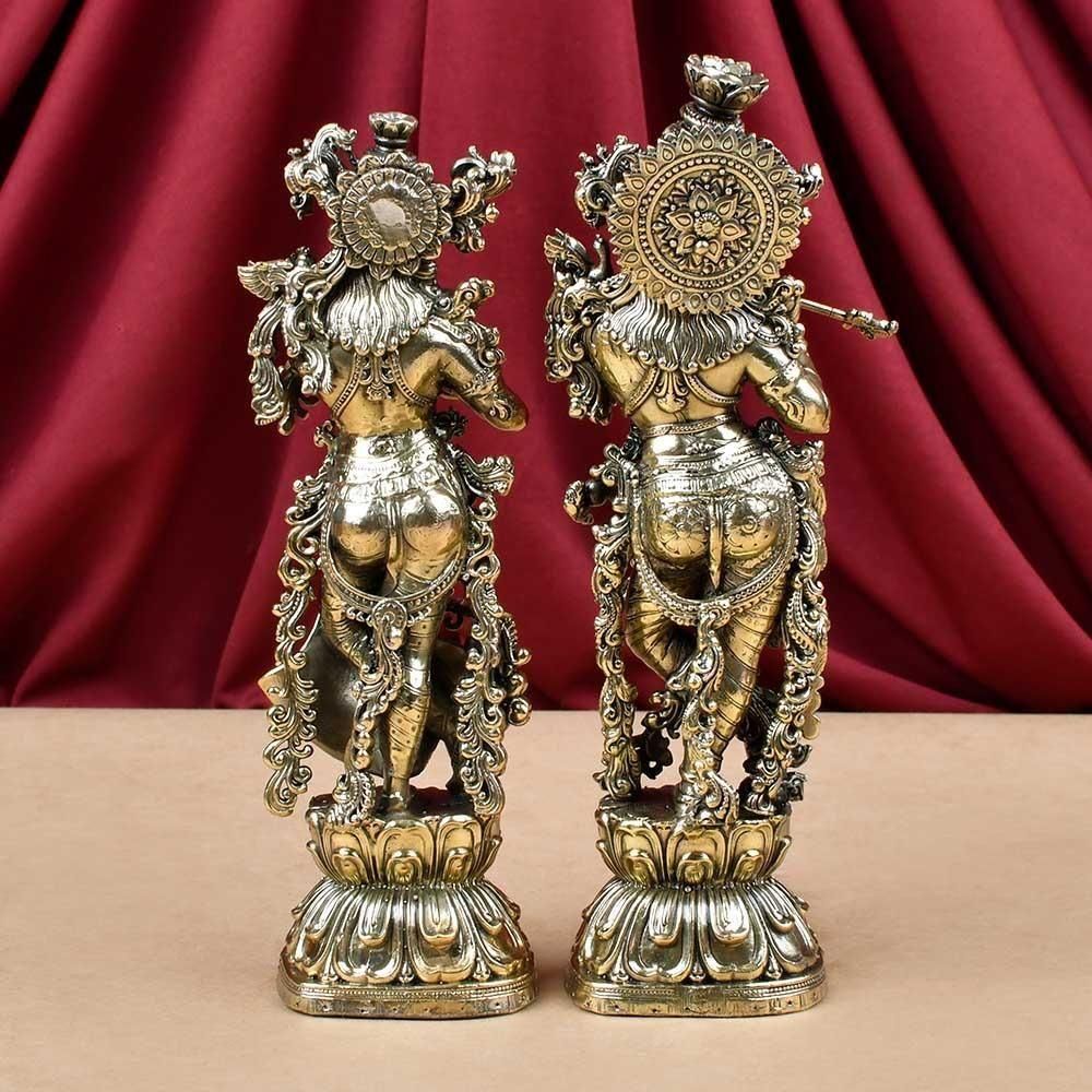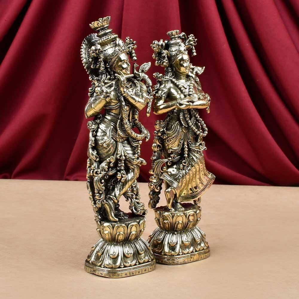 神聖な8種の合金であるアシュタダートゥで作られた、クリシュナ神が最愛のラーダーとペアになった美しい神像です。