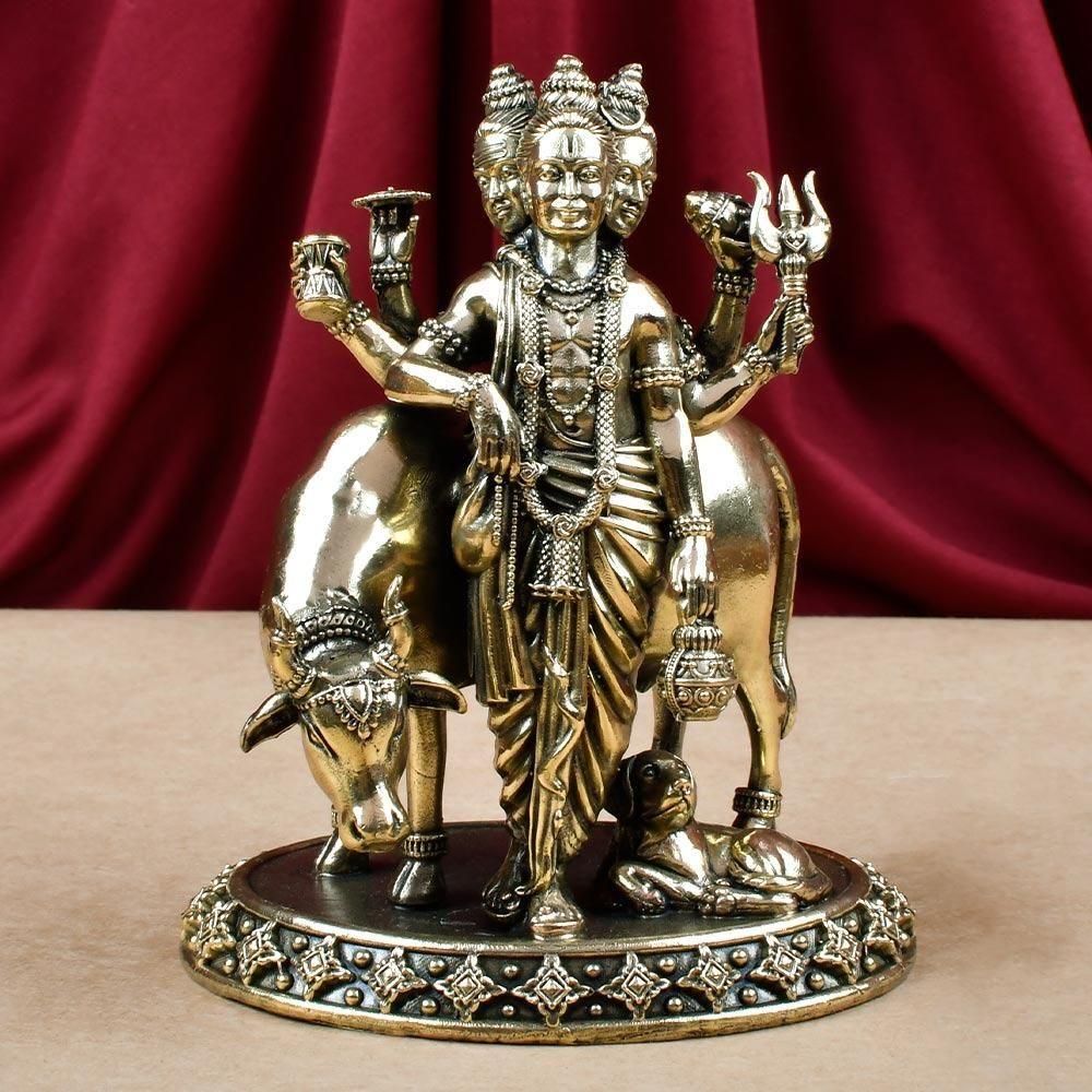 神聖な8種の合金であるアシュタダートゥで作られた、ブラフマー・ヴィシュヌ・シヴァの三位一体をあらわすダッタートレーヤ神の神像です。