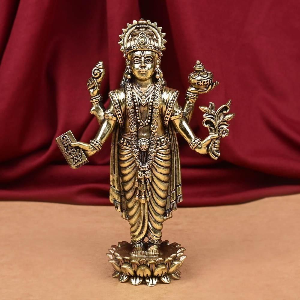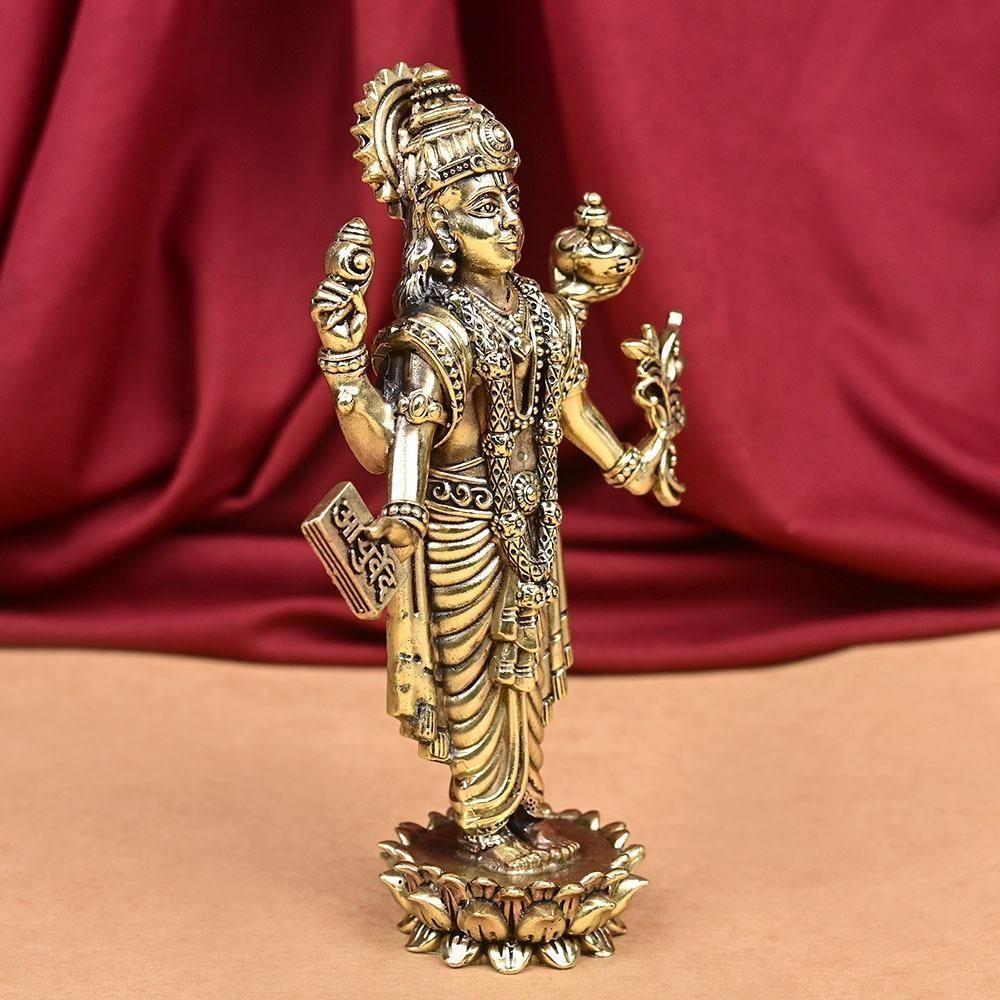 神聖な8種の合金であるアシュタダートゥで作られた、アーユルヴェーダの神として崇められるヴィシュヌ神の化身、ダンヴァンタリ神の神像です。