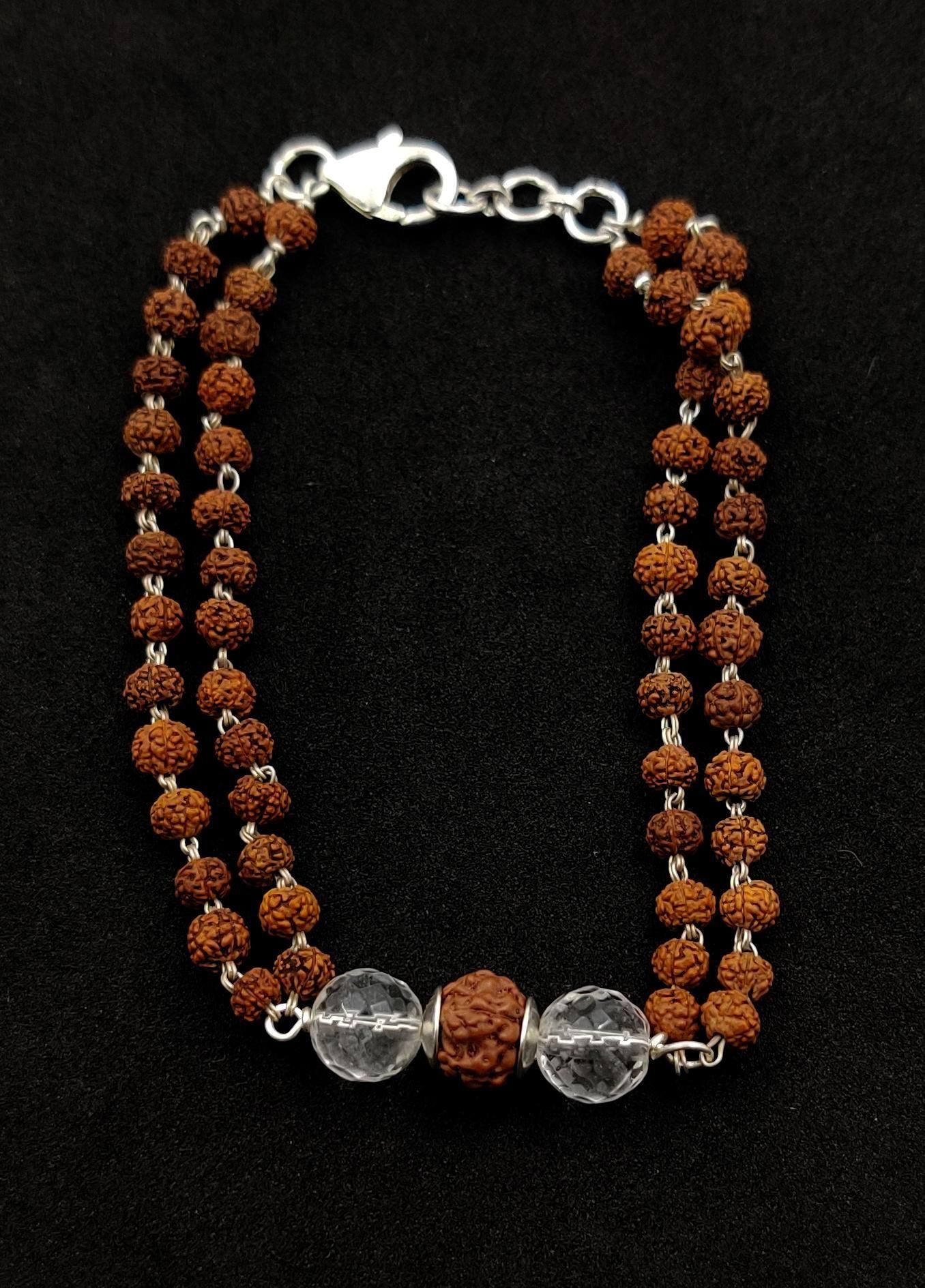 小さなルドラークシャ・ビーズと天然クリスタルビーズを使用したルドラークシャ・ブレスレット